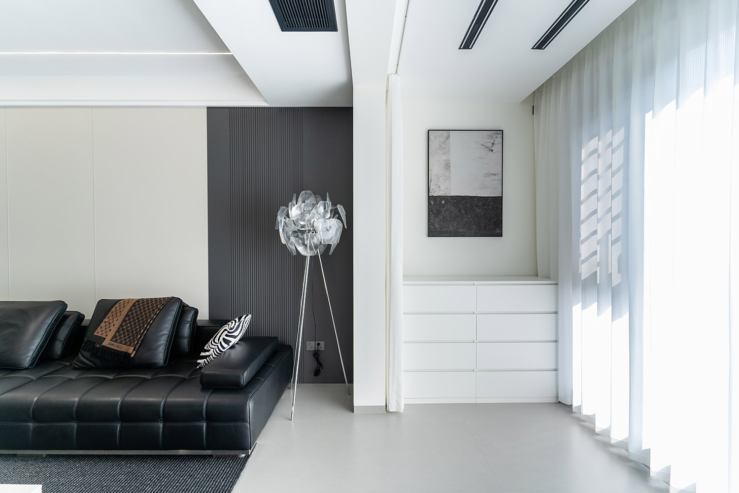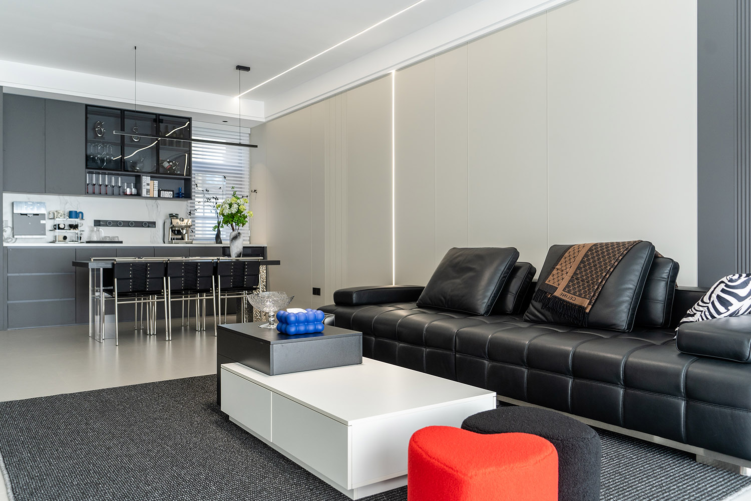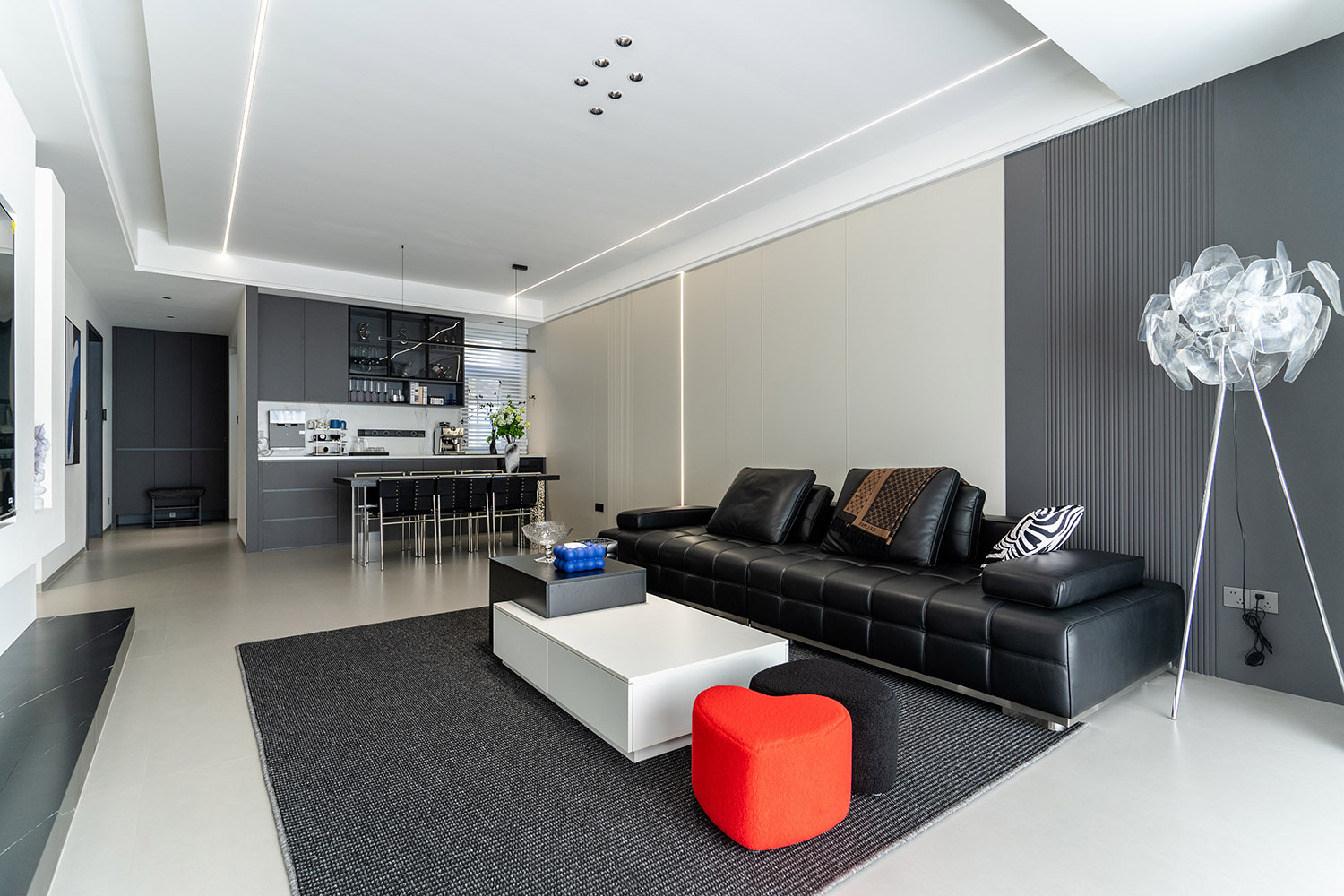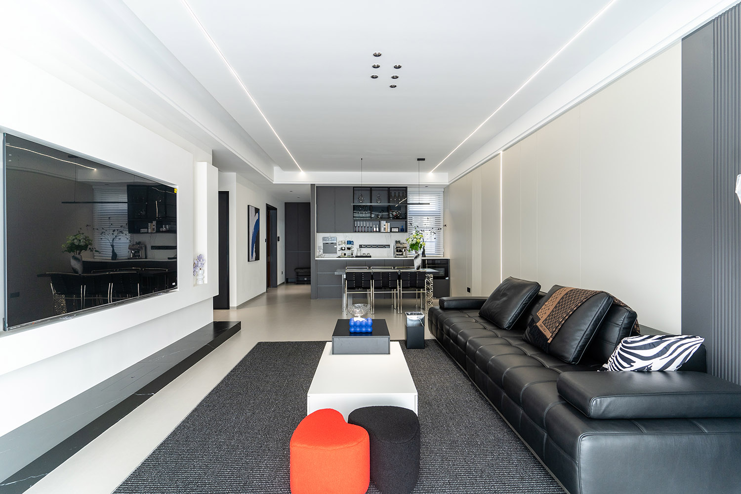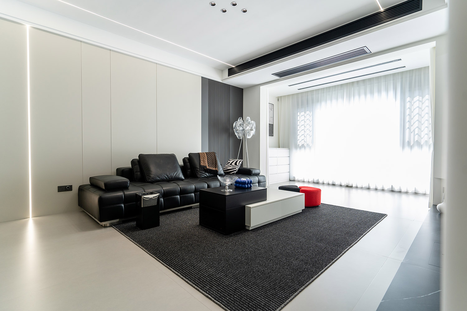 本案的核心設(shè)計(jì)理念是 “空間即主角” 。設(shè)計(jì)的目標(biāo)是消除一切非必要的裝飾,讓空間本身的結(jié)構(gòu)、比例與流動(dòng)的光影成為最美的視覺語(yǔ)言。它追求一種“空”的境界,但這“空”并非匱乏,而是充滿了精確計(jì)算后的張力與無(wú)限遐想的可能。真正的奢華,隱匿于材質(zhì)的精良、工藝的精準(zhǔn)與智能系統(tǒng)的無(wú)縫集成之中。
