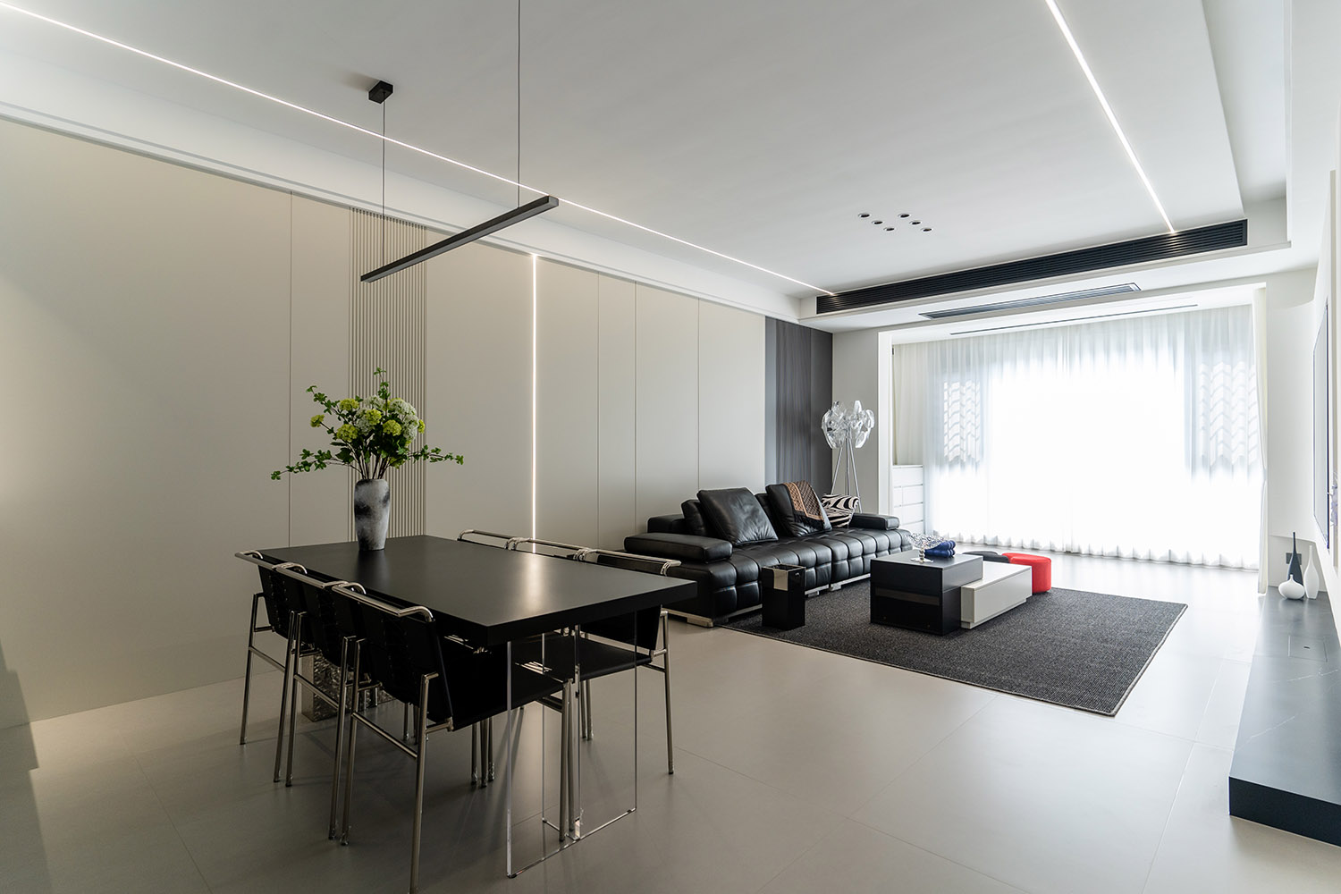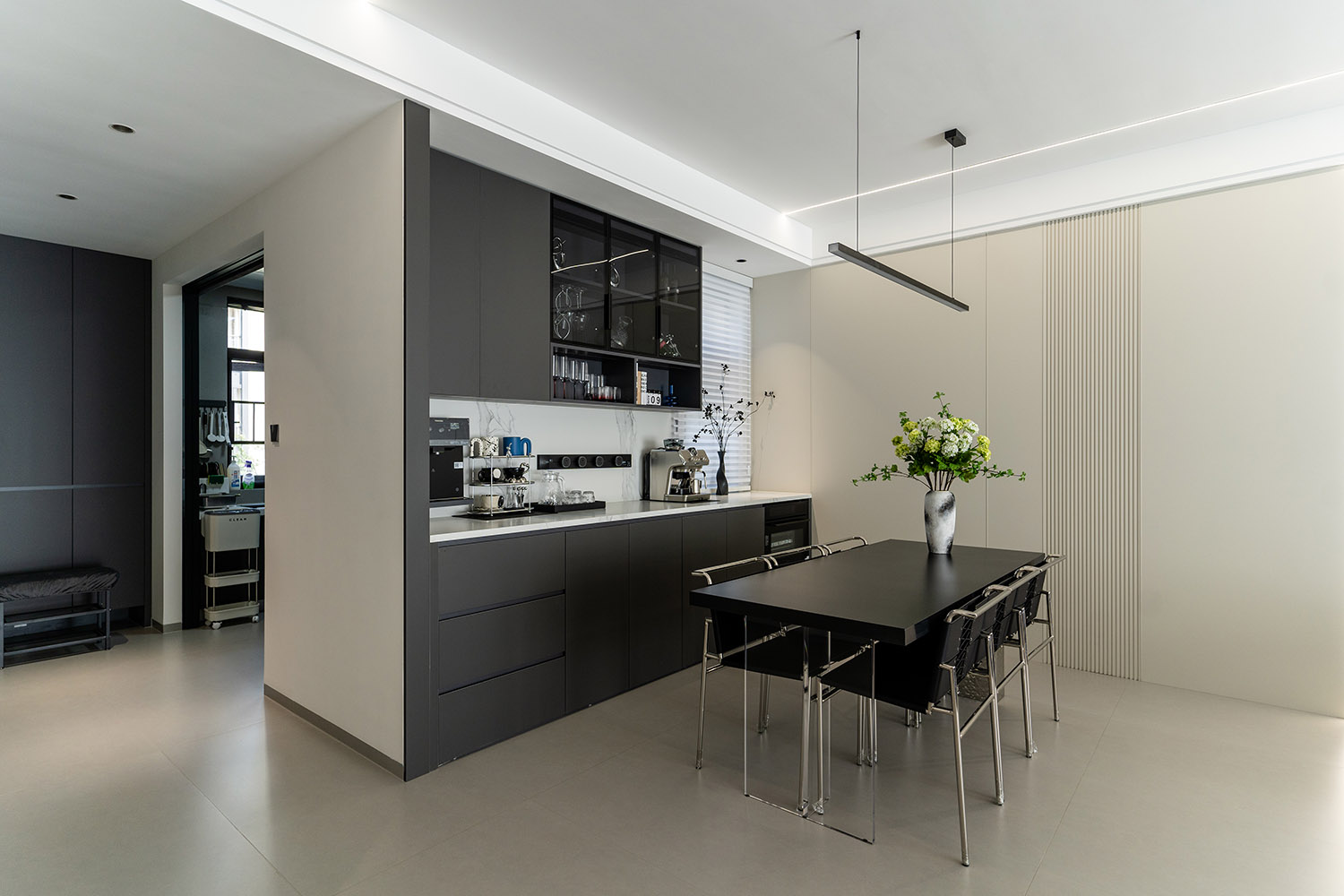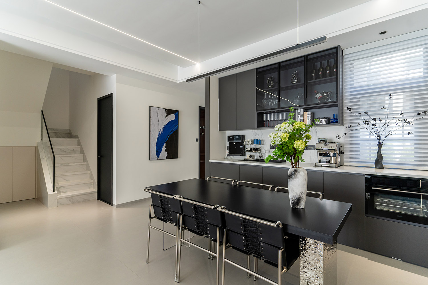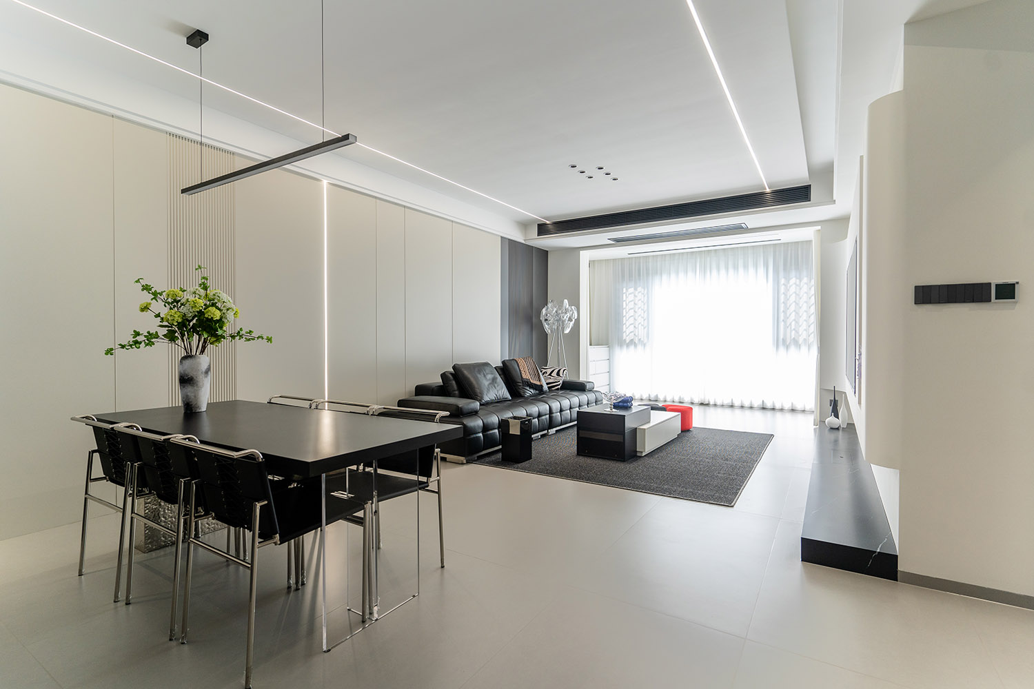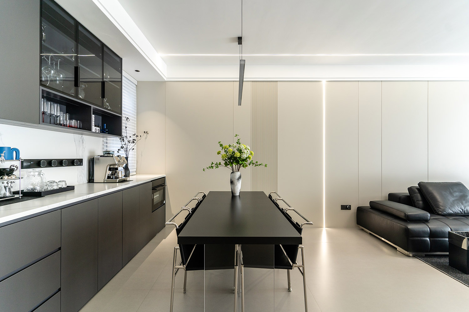 本案的核心設(shè)計(jì)理念是 “空間即主角” 。設(shè)計(jì)的目標(biāo)是消除一切非必要的裝飾,讓空間本身的結(jié)構(gòu)、比例與流動(dòng)的光影成為最美的視覺語(yǔ)言。它追求一種“空”的境界,但這“空”并非匱乏,而是充滿了精確計(jì)算后的張力與無(wú)限遐想的可能。真正的奢華,隱匿于材質(zhì)的精良、工藝的精準(zhǔn)與智能系統(tǒng)的無(wú)縫集成之中。