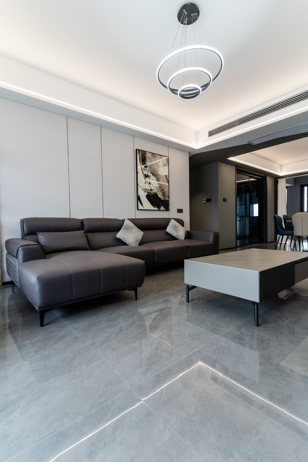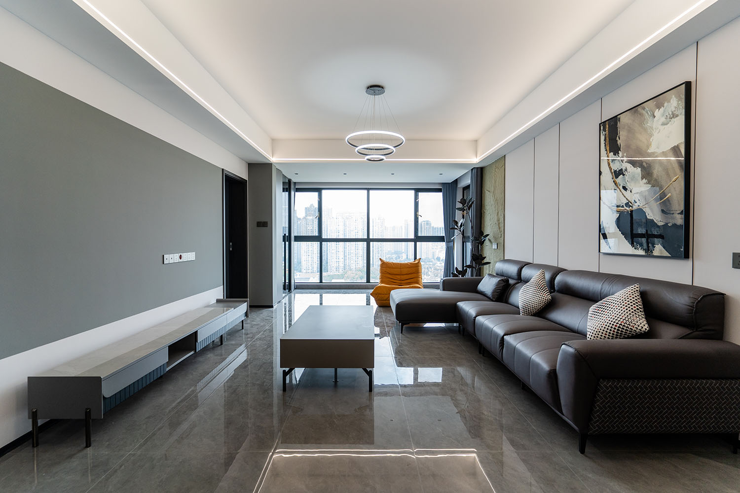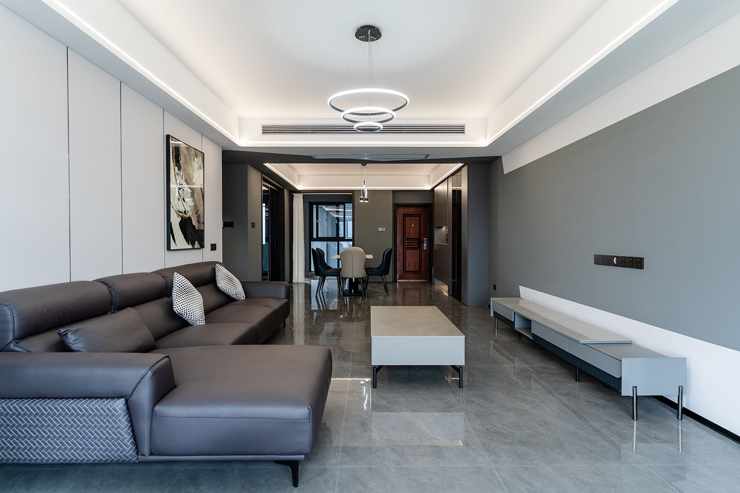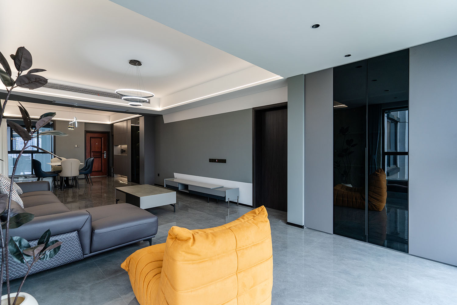 本案的核心設計理念是 “于克制中,見自由” 。旨在通過嚴謹?shù)臉媹D與色彩控制,展現(xiàn)一種高度理性的秩序之美。設計并非追求冰冷的極致,而是在黑白灰的框架內(nèi),通過材質的溫度、光影的變幻與線條的韻律,注入感性的生活氣息,最終達成一種冷靜與溫暖、簡約與豐富的微妙平衡,滿足都市精英對品質與格調(diào)的雙重追求。