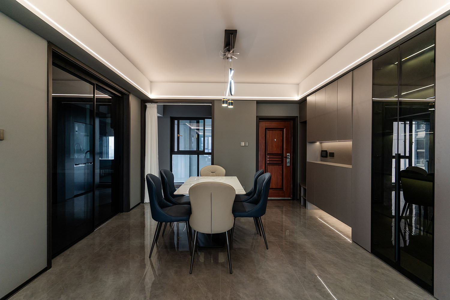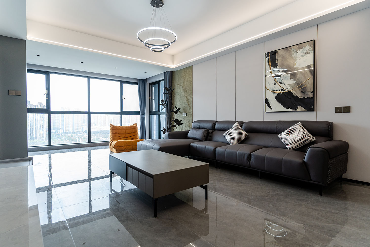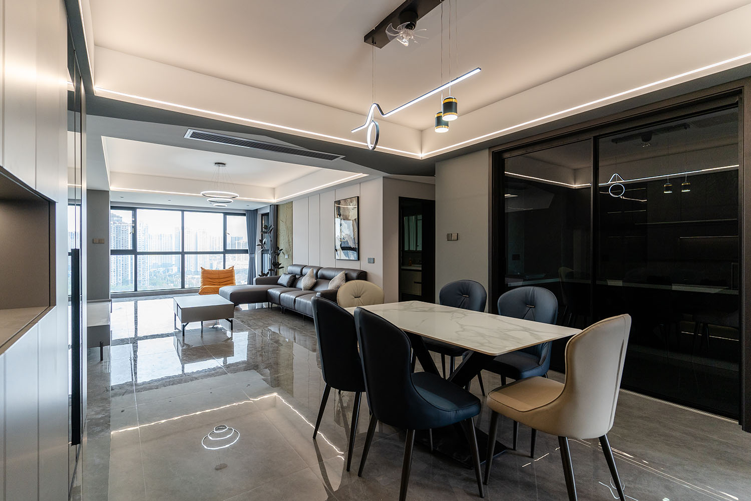 本案的核心設計理念是 “于克制中,見自由” 。旨在通過嚴謹?shù)臉媹D與色彩控制,展現(xiàn)一種高度理性的秩序之美。設計并非追求冰冷的極致,而是在黑白灰的框架內(nèi),通過材質的溫度、光影的變幻與線條的韻律,注入感性的生活氣息,最終達成一種冷靜與溫暖、簡約與豐富的微妙平衡,滿足都市精英對品質與格調(diào)的雙重追求。