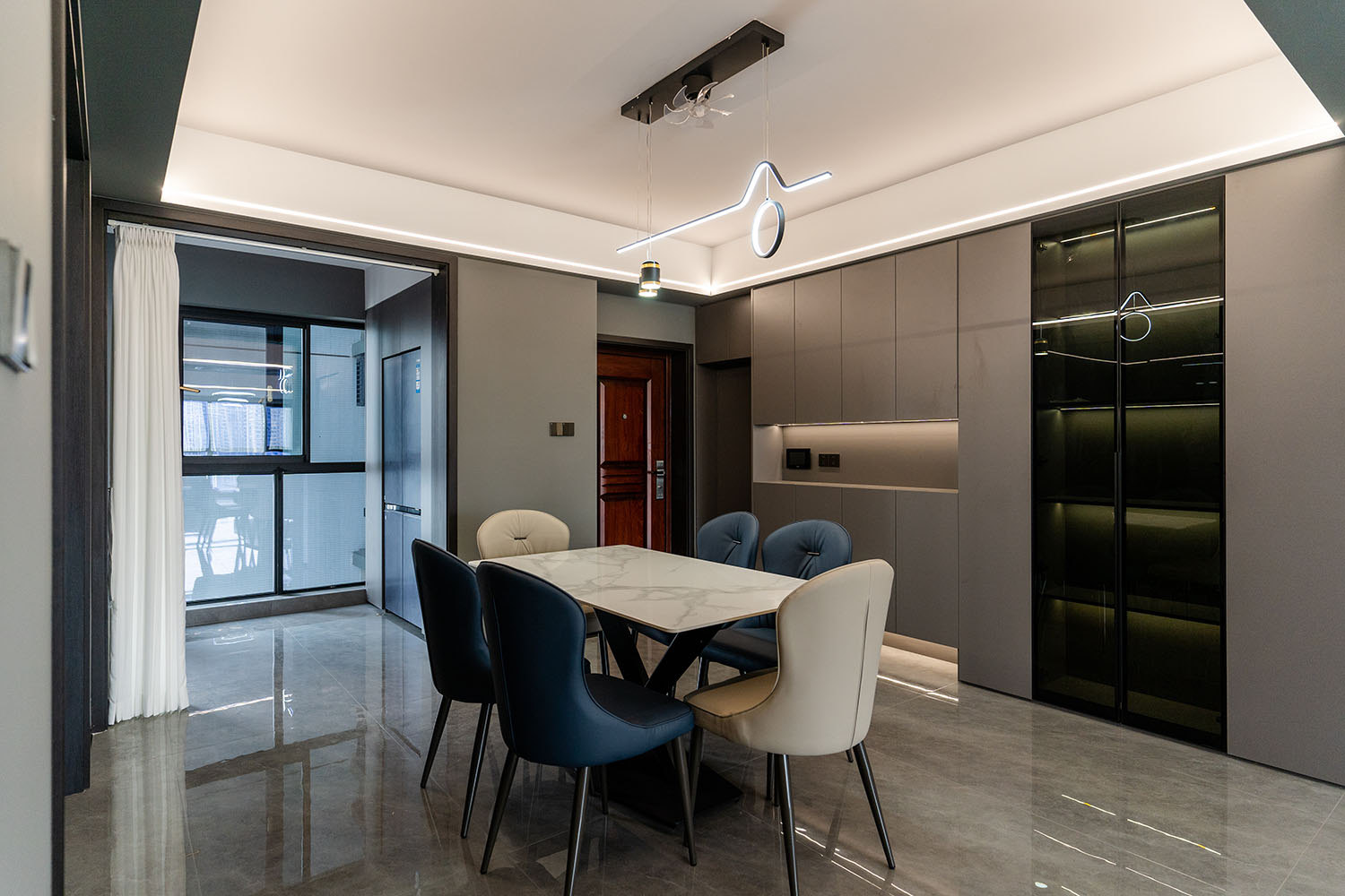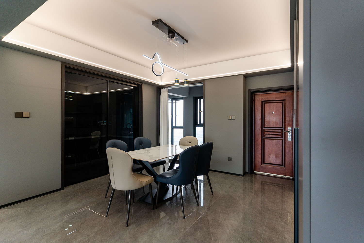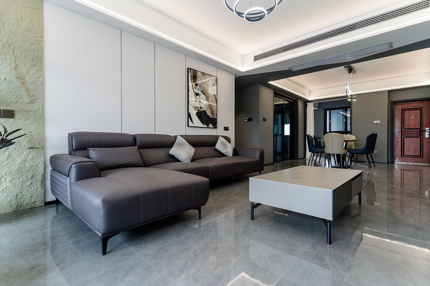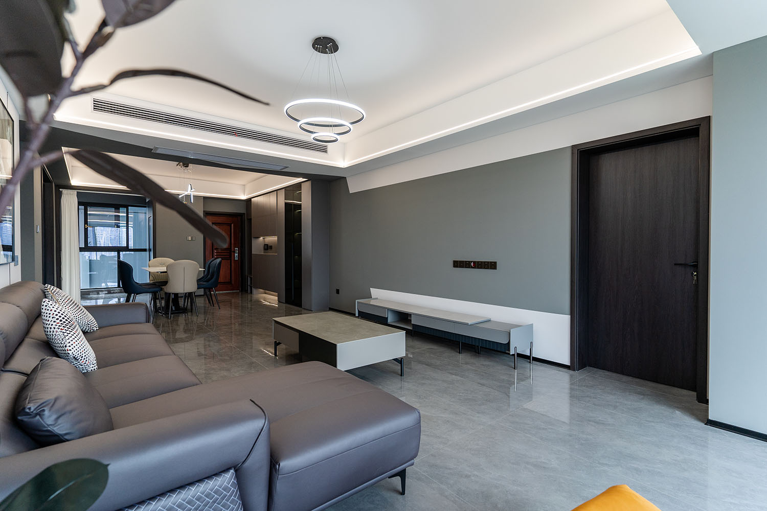 本案的核心設計理念是 “于克制中,見自由” 。旨在通過嚴謹?shù)臉媹D與色彩控制,展現(xiàn)一種高度理性的秩序之美。設計并非追求冰冷的極致,而是在黑白灰的框架內(nèi),通過材質的溫度、光影的變幻與線條的韻律,注入感性的生活氣息,最終達成一種冷靜與溫暖、簡約與豐富的微妙平衡,滿足都市精英對品質與格調(diào)的雙重追求。