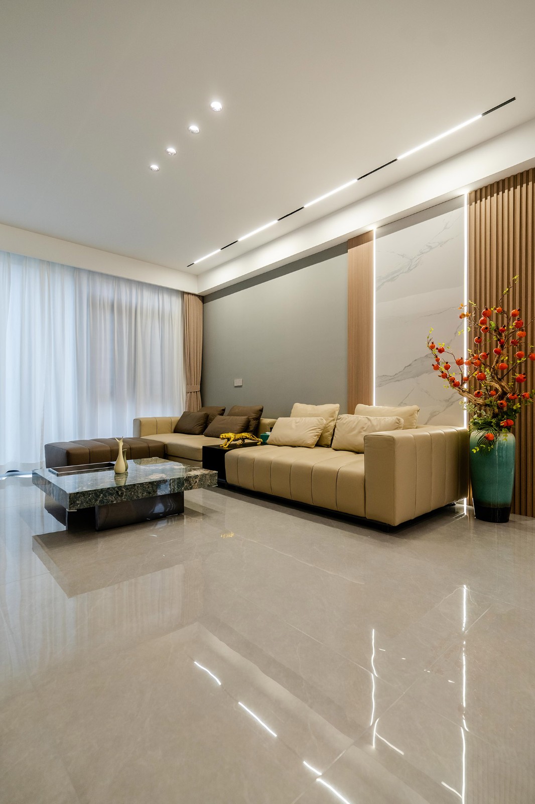 現(xiàn)代輕奢風(fēng)格,是在簡潔的現(xiàn)代框架上,通過精致的細(xì)節(jié)與克制的華麗,構(gòu)筑出理性與感性并存的居住美學(xué)。在139平米的空間里,它能將功能主義的實(shí)用與輕奢主義的優(yōu)雅完美結(jié)合,打造一個兼具都市效率、家庭溫度與圈層品位的精致居所。 本案的核心設(shè)計(jì)理念是 “奢于細(xì)節(jié),雅于克制” 。它建立在現(xiàn)代主義堅(jiān)實(shí)的功能與結(jié)構(gòu)基礎(chǔ)之上,通過材質(zhì)、色彩與光影的精細(xì)化點(diǎn)綴,賦予空間內(nèi)在的溫度與外在的辨識度。設(shè)計(jì)旨在營造一種“低調(diào)的矚目感”,讓奢華不流于表面,而是內(nèi)化于每一處精良的用料、精準(zhǔn)的比例與舒適的體驗(yàn)之中。