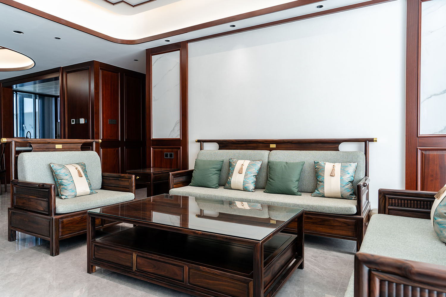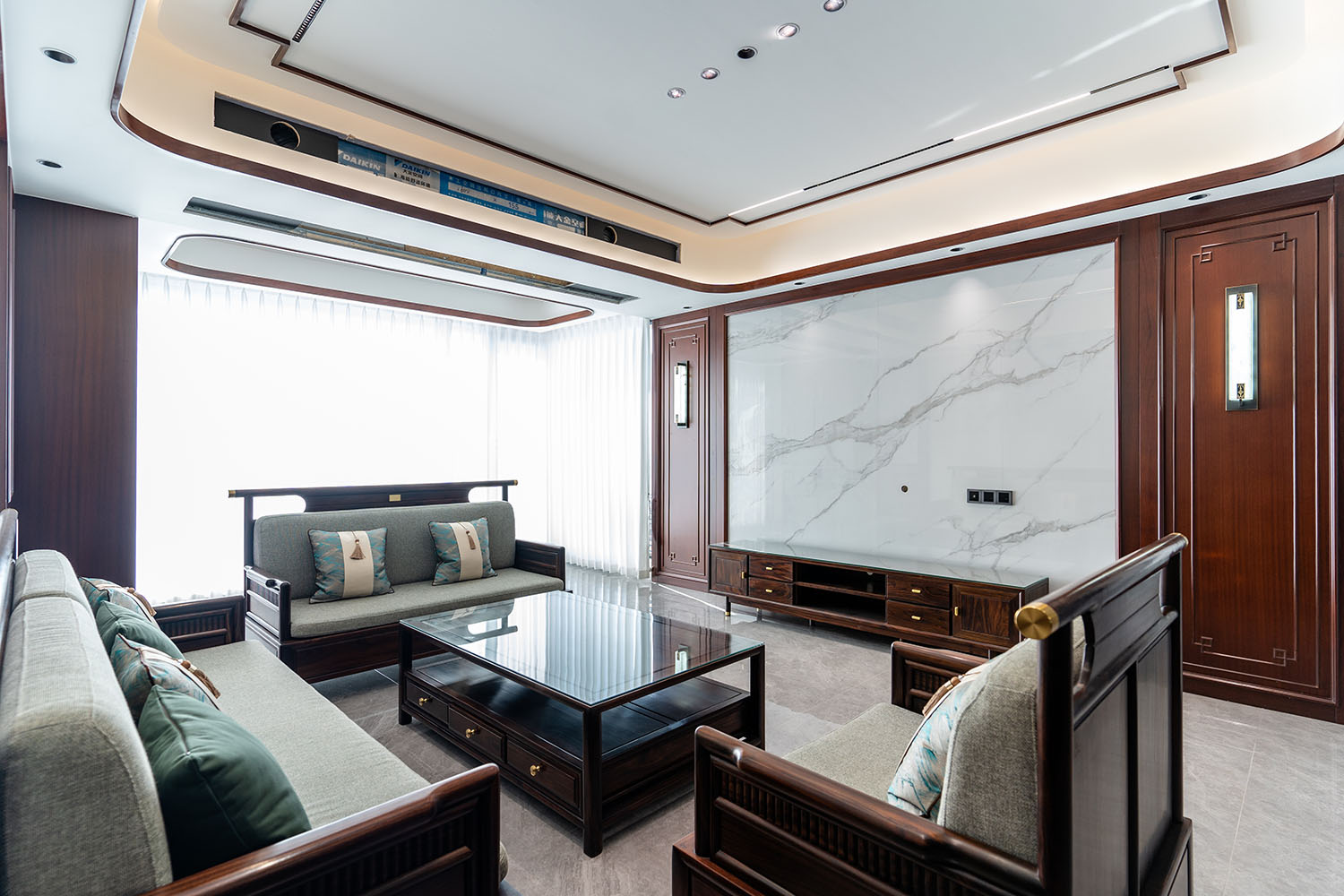 本案的核心設(shè)計(jì)理念是 “大象無(wú)形,大音希聲” 。旨在以恢弘的空間尺度,承載最含蓄內(nèi)斂的東方意境。設(shè)計(jì)追求的不僅是形式的呈現(xiàn),更是空間氣場(chǎng)、文脈氣韻與生活氣息的完美融合。通過(guò)中軸對(duì)稱(chēng)、虛實(shí)相生、框景借景等傳統(tǒng)造園手法,在現(xiàn)代大宅的框架內(nèi),營(yíng)造出一種可供三代同堂觀想、品鑒與傳承的居住體驗(yàn)。 新中式風(fēng)格,是東方美學(xué)智慧與現(xiàn)代居住哲學(xué)的集大成者。在180平米的寬闊天地里,它得以超越符號(hào)的堆砌,轉(zhuǎn)而通過(guò)宏大的空間敘事、深層的材質(zhì)對(duì)話與詩(shī)意的意境營(yíng)造,打造一座兼具文化傳承、家族風(fēng)范與當(dāng)代奢華的傳世府邸。