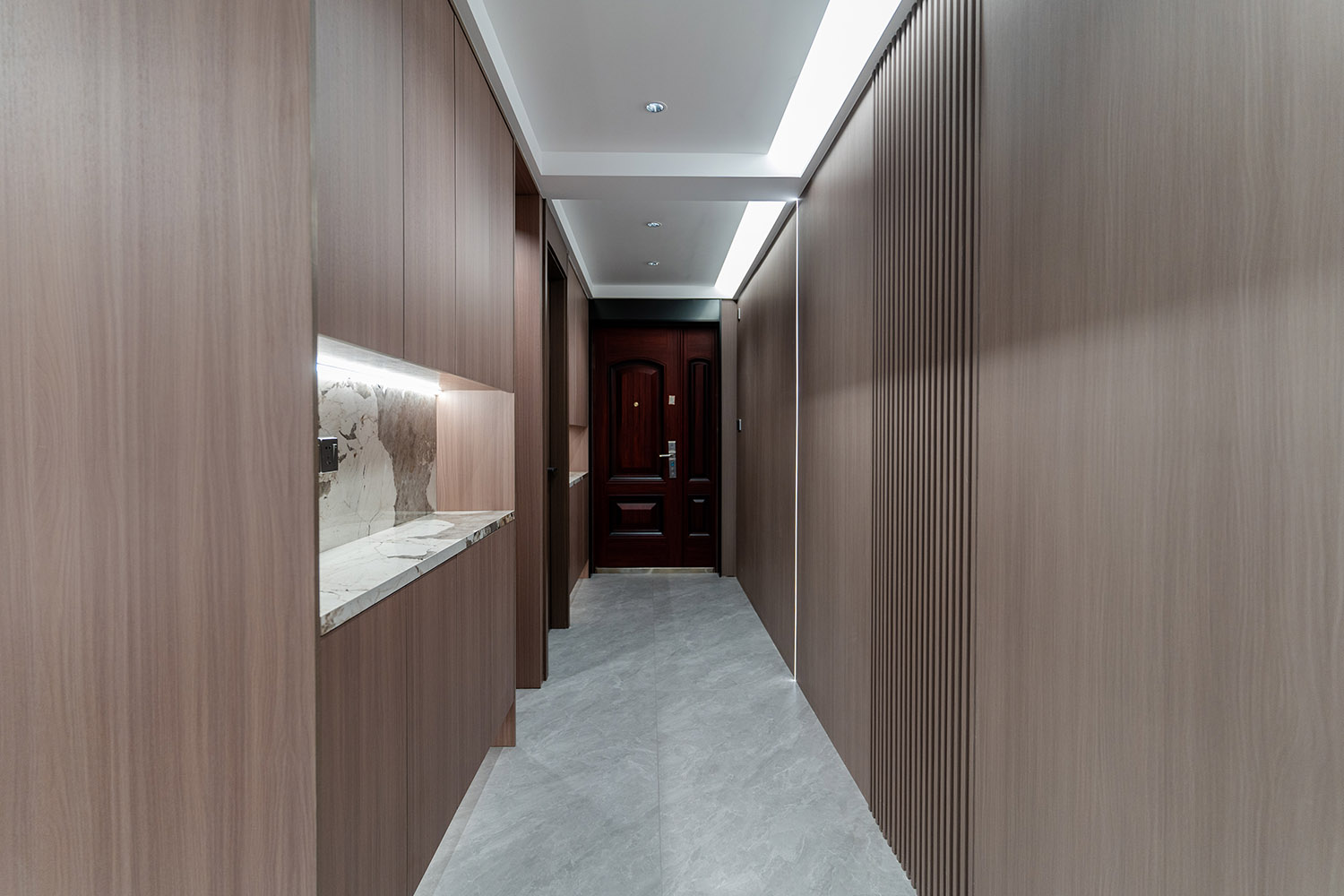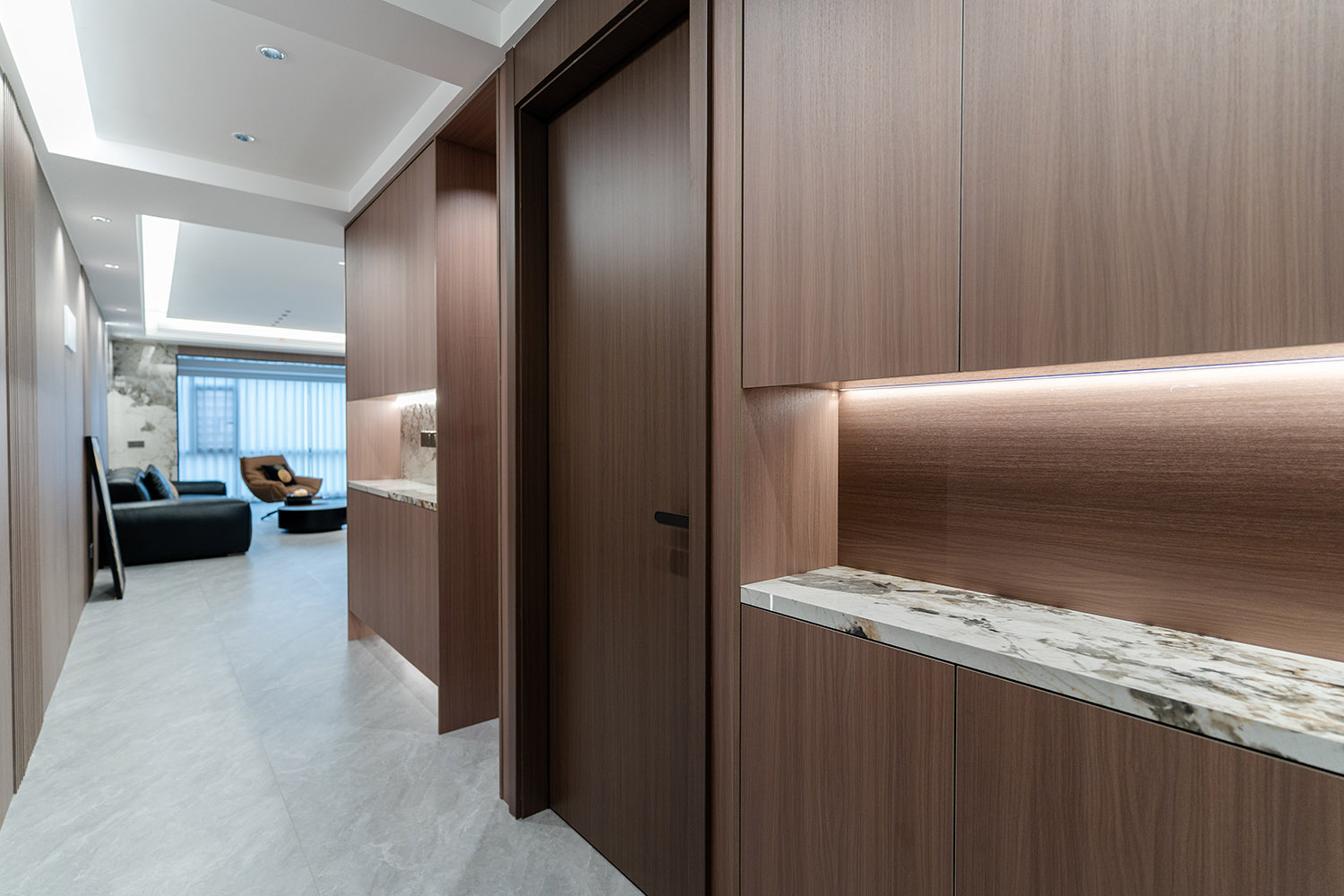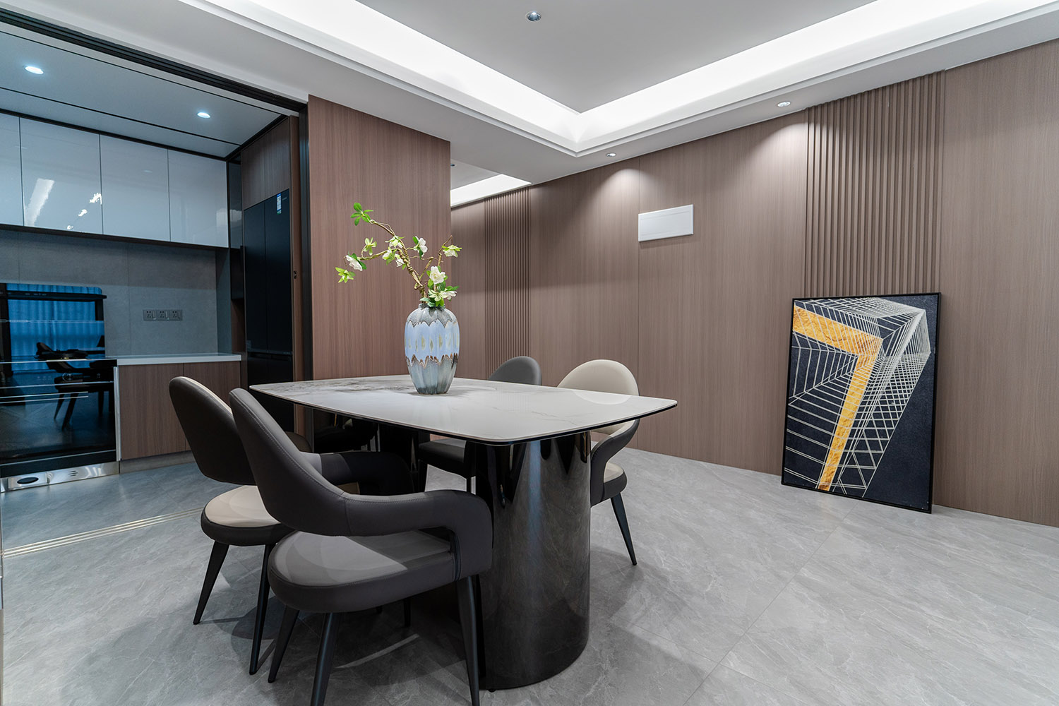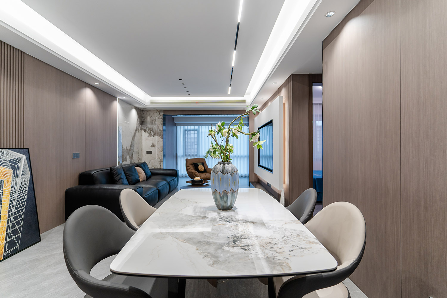 設(shè)計(jì)理念:奢于細(xì)節(jié),簡于形式 本案的核心設(shè)計(jì)理念是 “低調(diào)的奢華” 。它追求的不是形式的炫耀,而是內(nèi)在品質(zhì)的極致呈現(xiàn)。設(shè)計(jì)通過對(duì)材質(zhì)本身的深刻理解、對(duì)光影的藝術(shù)化塑造以及對(duì)功能的無痕整合,在每一處細(xì)節(jié)中注入奢華感。最終,空間呈現(xiàn)出一種靜謐的力量感,讓居者在日常點(diǎn)滴中,都能感受到被頂級(jí)品質(zhì)包圍的從容與優(yōu)雅。 意式極簡風(fēng)格,是理性美學(xué)與奢適生活的完美統(tǒng)一。它剝離了多余的裝飾,通過精煉的線條、頂級(jí)的材質(zhì)與嚴(yán)謹(jǐn)?shù)谋壤瑯?gòu)筑一個(gè)兼具冷靜氣場(chǎng)與溫潤觸感的居住空間。本案以億都隨園128平方米的戶型為載體,深度解析如何在適中面積內(nèi),將意式的優(yōu)雅基因與極簡的現(xiàn)代精神相融合,打造一個(gè)彰顯國際品味與生活質(zhì)感的精致居所。
