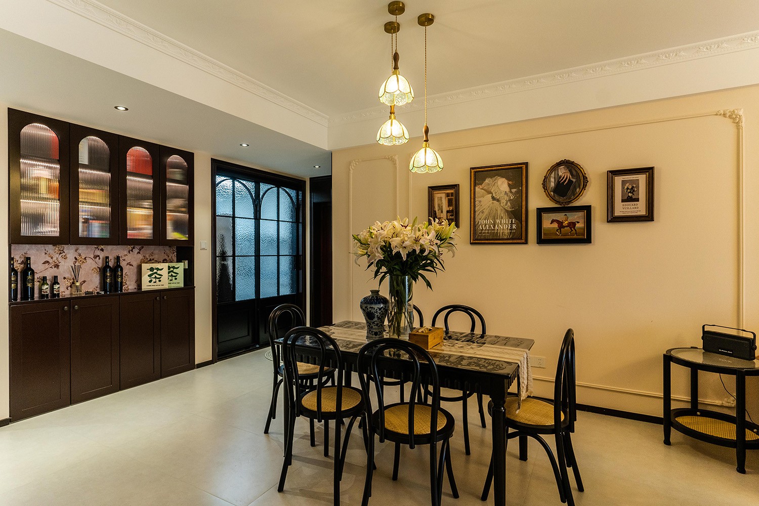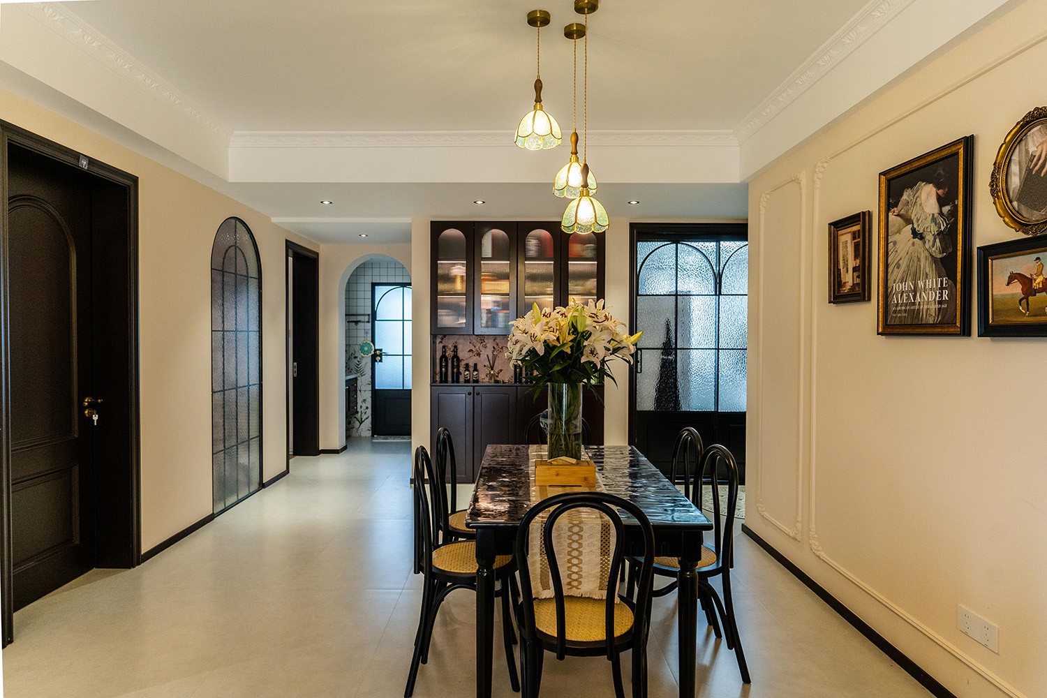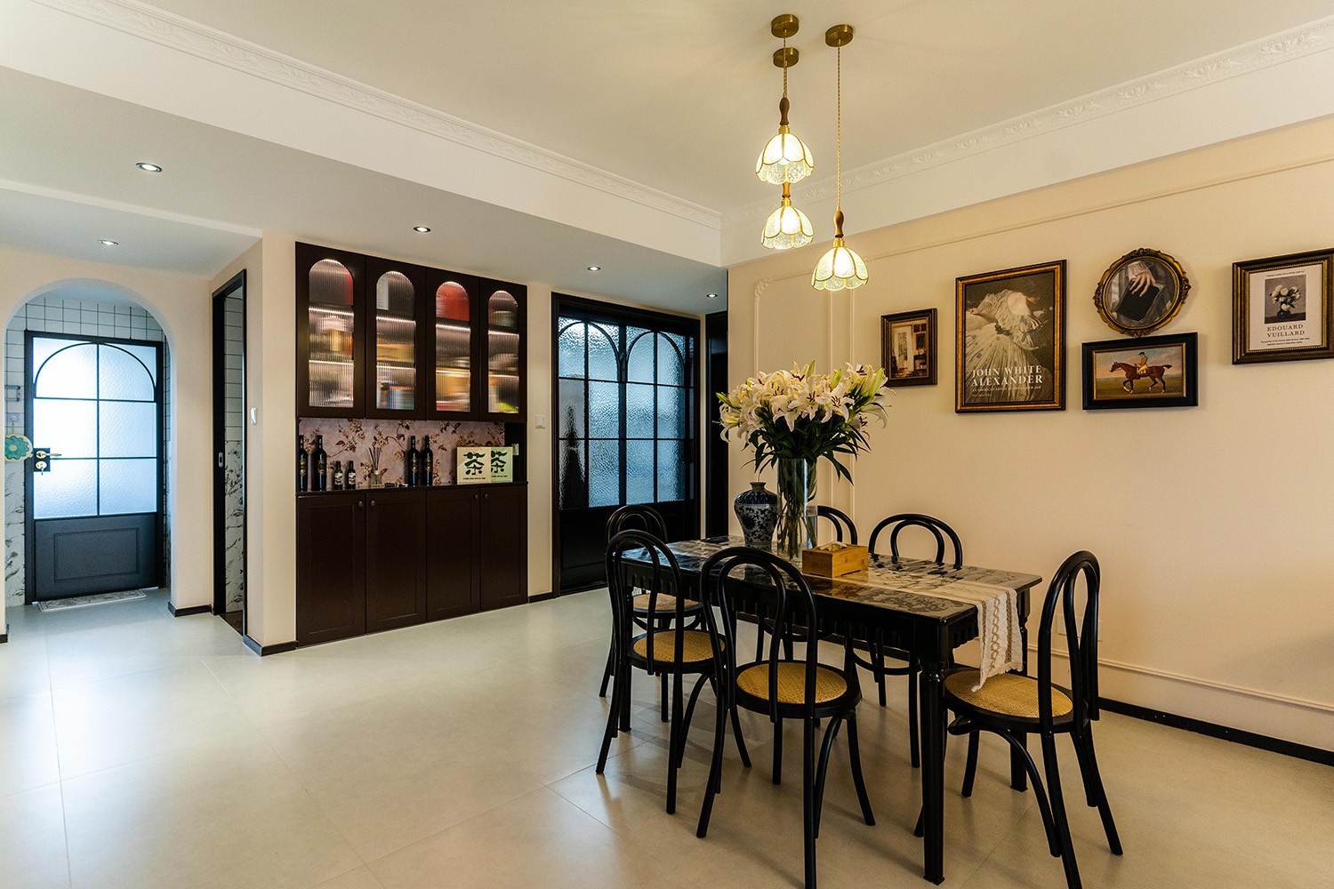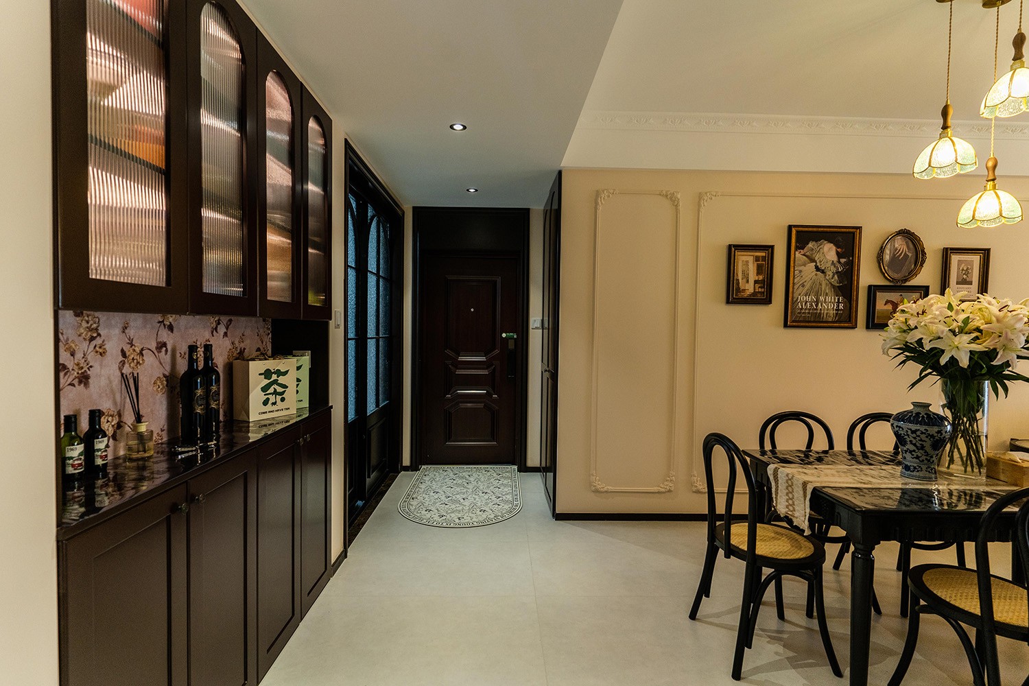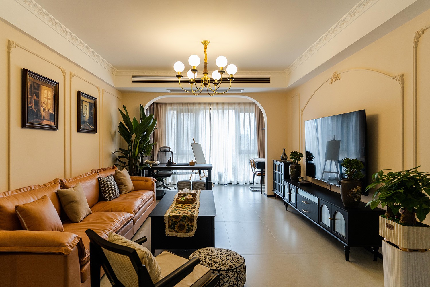 法式復古風格在山水文園113㎡的空間中,通過對色彩、材質、光影和造型的精準把握,打造出一個既有歷史沉淀又符合當代審美的理想居所。 軟糯的黑色沙發(fā),色彩與綠植形成呼應,與陽臺圍合成一處溫馨的生態(tài)空間。在快節(jié)奏、高強度的工作之余,為疲憊的身軀找到安放之處。復古的色調,仿佛是歲月沉淀的詩篇;細膩的紋理,講述著往昔的故事。吊燈投射出溫暖而柔和的光,照亮了角落里被遺忘的時光。 這不僅僅是一種設計風格,更是對生活方式的深度詮釋——在懷舊的底色中,描摹當代生活的浪漫想象;在復古的韻味里,安放現(xiàn)代人的詩意棲居。