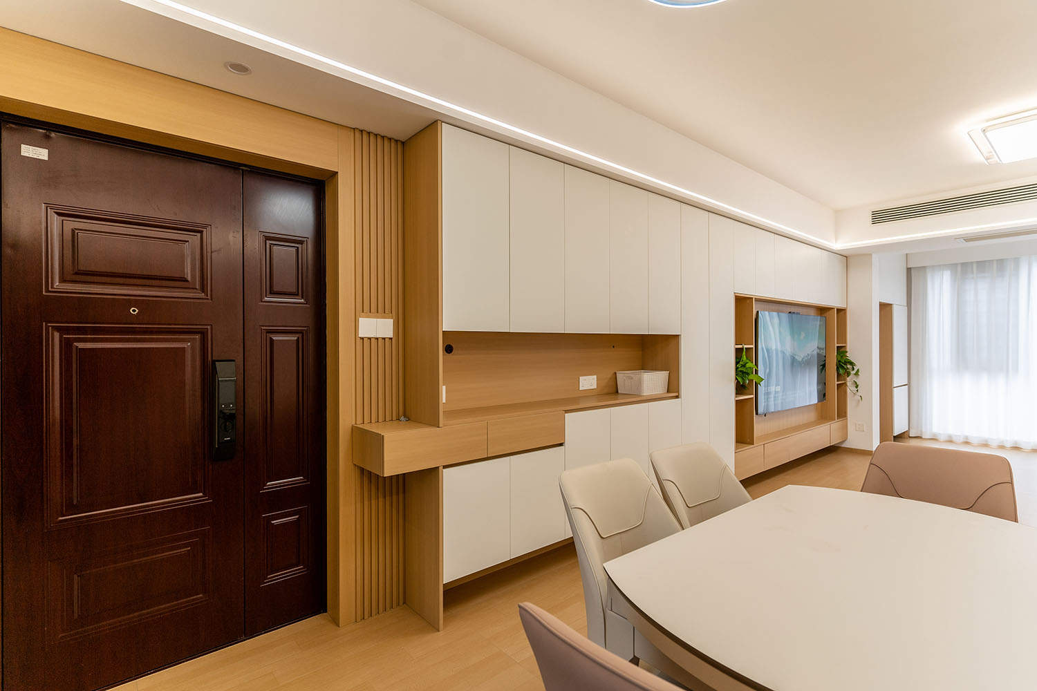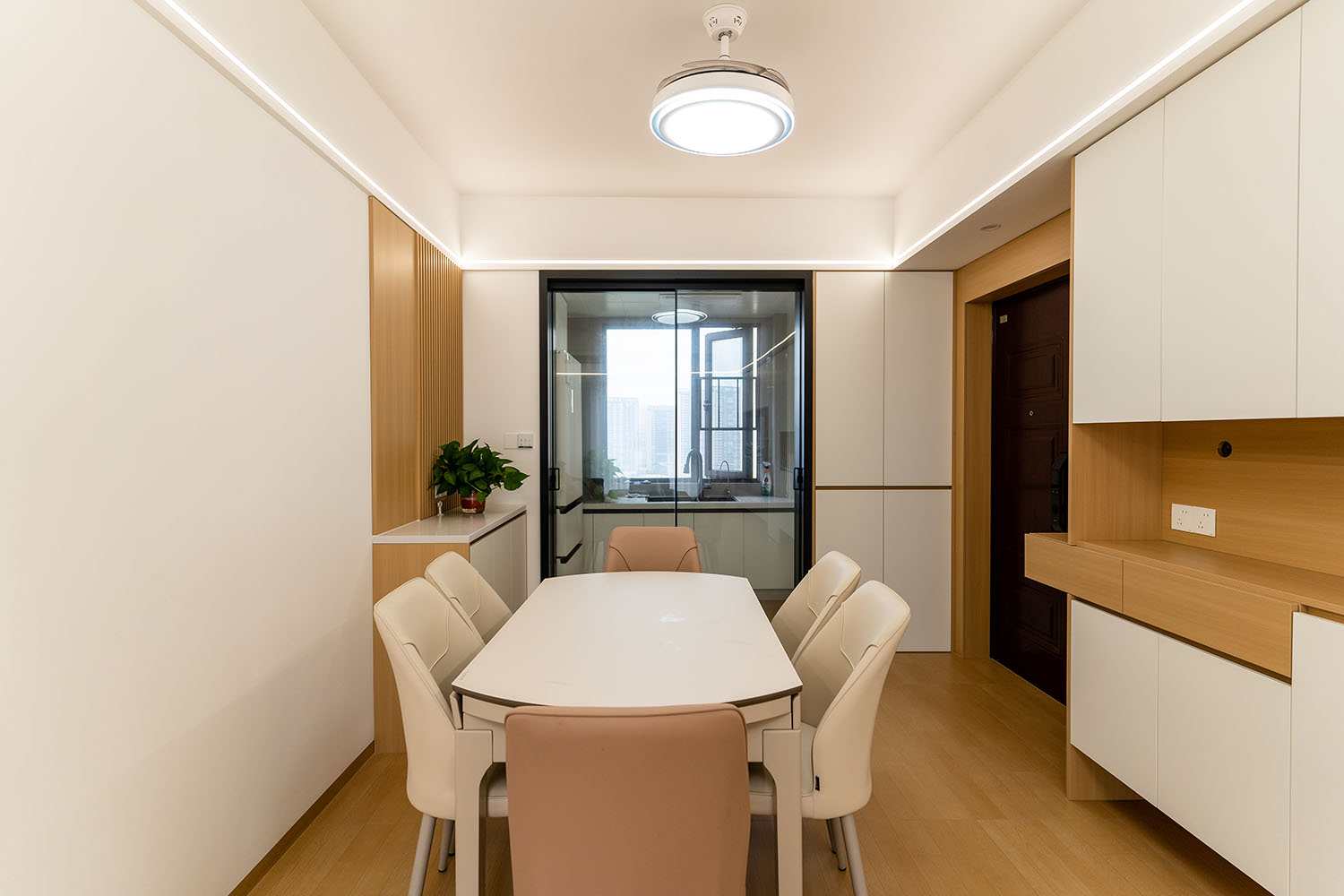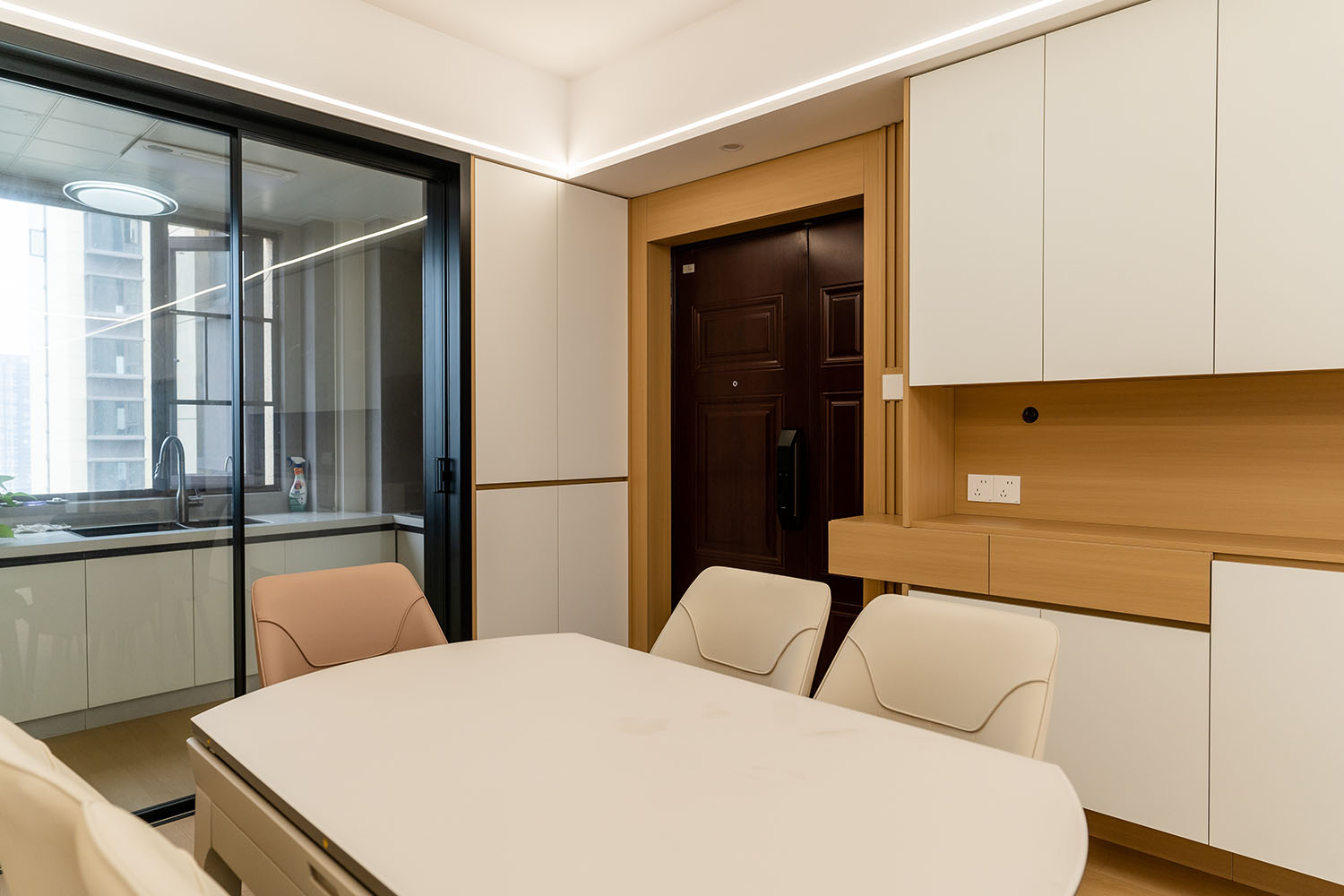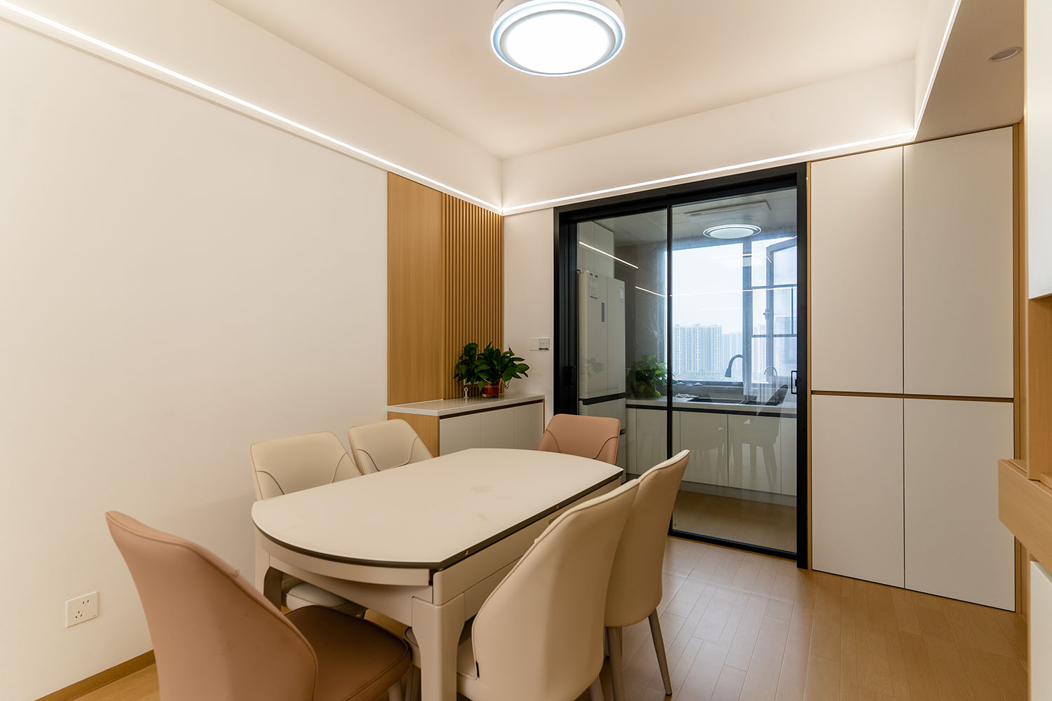 株洲綠地二號(hào)127平米原木風(fēng)格,以 “自然共生,時(shí)光容器” 為核心設(shè)計(jì)理念。本案不止于營造一個(gè)靜態(tài)的空間,更旨在打造一個(gè)能承載生活軌跡、伴隨家庭成員共同成長的 “生命體”——通過大量運(yùn)用可再生木材、引入自然光影與布局可變系統(tǒng),讓家成為一個(gè)有溫度、會(huì)呼吸的有機(jī)體,在歲月流轉(zhuǎn)中沉淀出獨(dú)特的生活印記與溫暖記憶。 原木風(fēng)格憑借自然溫潤、治愈松弛的特質(zhì),一直是裝修圈的熱門風(fēng)格,深受追求簡(jiǎn)約舒適的家庭青睞。它的魅力在于,通過溫暖的木質(zhì)調(diào)、沈靜的灰階色以及大篇幅留白等視覺手法,塑造平實(shí)放松的生活情境,同時(shí)格外注重空間感的營造與光影的自然流動(dòng)。 株洲綠地二號(hào)127平米原木風(fēng)格空間,通過對(duì)材質(zhì)、光影、色彩和細(xì)節(jié)的精準(zhǔn)把控,實(shí)現(xiàn)了“自然共生,時(shí)光容器”的設(shè)計(jì)理想。統(tǒng)一的木色調(diào)從地板延伸至柜體,像大地生長出的脈絡(luò),將整個(gè)空間溫柔地錨固在一片寧靜之中。 原木風(fēng)不是簡(jiǎn)單的“木頭堆砌”,而是一種回歸自然的生活哲學(xué)。在這里,靜坐、獨(dú)處、呼吸……生活最終在光的薄霧與原木的呼吸中,展現(xiàn)出純粹清澈的本相。真正的奢侈從無喧囂,正是這份由木、光與精工共同鐫刻的寧靜雋永,在時(shí)光里低語著“家”最樸素的真意。 當(dāng)腳步的回聲被墻壁溫柔包裹,那些刻意保留的間隙,恰是造景。原木之境,是對(duì)生活本真的追尋,是對(duì)內(nèi)心寧靜的向往——讓我們?cè)诳旃?jié)奏的現(xiàn)代生活中,尋得一片可以放慢腳步、沉淀心靈的凈土,感受生活最純粹的美好。