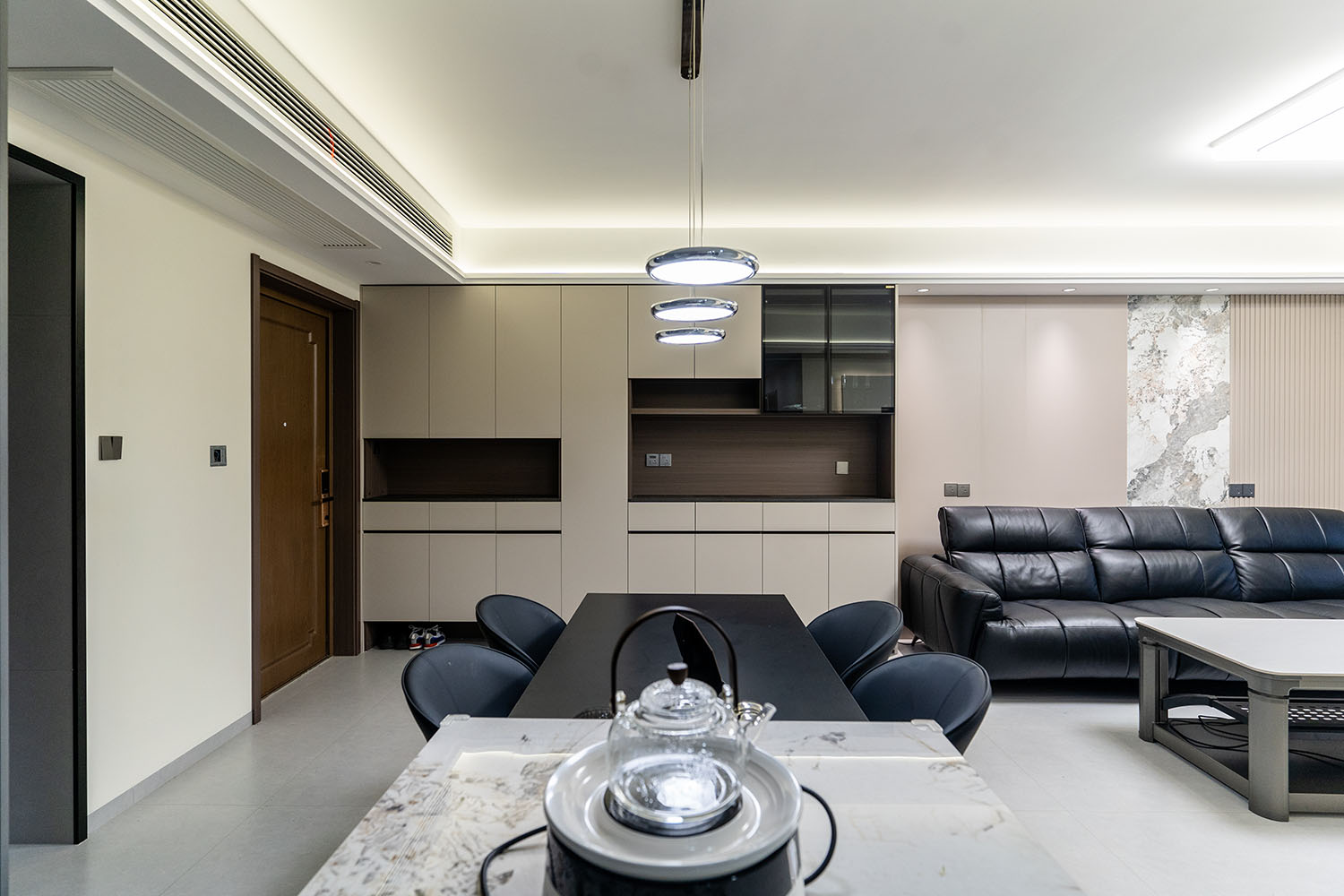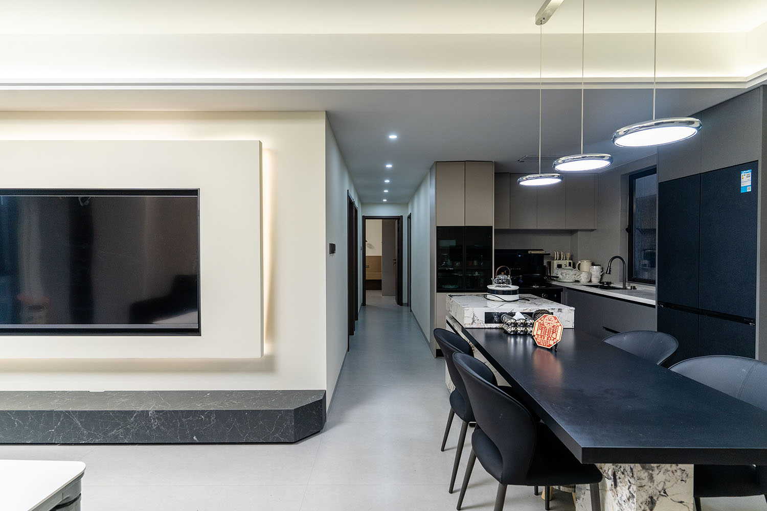 株洲建發(fā)央著115平米現(xiàn)代風格,以 “功能為綱,體驗為魂” 為核心設計理念,將空間視為一個高效運轉的精工系統(tǒng)。設計摒棄一切非必要的裝飾,將每一寸面積都轉化為提升居住品質的有效價值,通過科學動線、模塊化收納與智能人居的考量,為居者量身打造一個在視覺上極度清爽、在使用上極致便捷、在感受上無比放松的沉浸式居住體驗。 本案的核心理念在于 “定制化效率,沉浸式舒適” ?,F(xiàn)代風格強調功能與形式的統(tǒng)一,在115平米的三居室空間中,設計師以“少即是多”為原則,通過極簡的線條、克制的色彩和純粹的材料,打造一個干凈、通透且富有高級感的居住空間,滿足都市精英對高效、舒適生活的追求。 株洲建發(fā)央著115平米現(xiàn)代風格空間,通過對功能、材質、光影和收納的精準把控,實現(xiàn)了“功能為綱,體驗為魂”的設計理想。用幾何切割光影,用反差喚醒空間靈魂,每一處設計都在回應著現(xiàn)代家庭對品質、舒適與美學的多重需求。 褪去浮華,回歸本真。在黑白灰的底色里,一盞暖調落地燈是深夜的陪伴,一株綠植是呼吸的自然注解,灰調沙發(fā)上的褶皺藏著生活的溫度??酥?,是為了讓真正重要的事物發(fā)光。 當腳步的回聲被墻壁溫柔包裹,那些刻意保留的留白,恰是造景?,F(xiàn)代之境,是對生活本真的追尋,是對內心寧靜的向往——讓我們在快節(jié)奏的都市生活中,尋得一片可以放慢腳步、沉淀心靈的凈土,感受生活最純粹的美好。 這不僅僅是一個居住空間,更是一個能夠承載日常詩意、安放生活想象的精工范本。在理性的空間秩序中,譜寫出感性的生活詩篇。