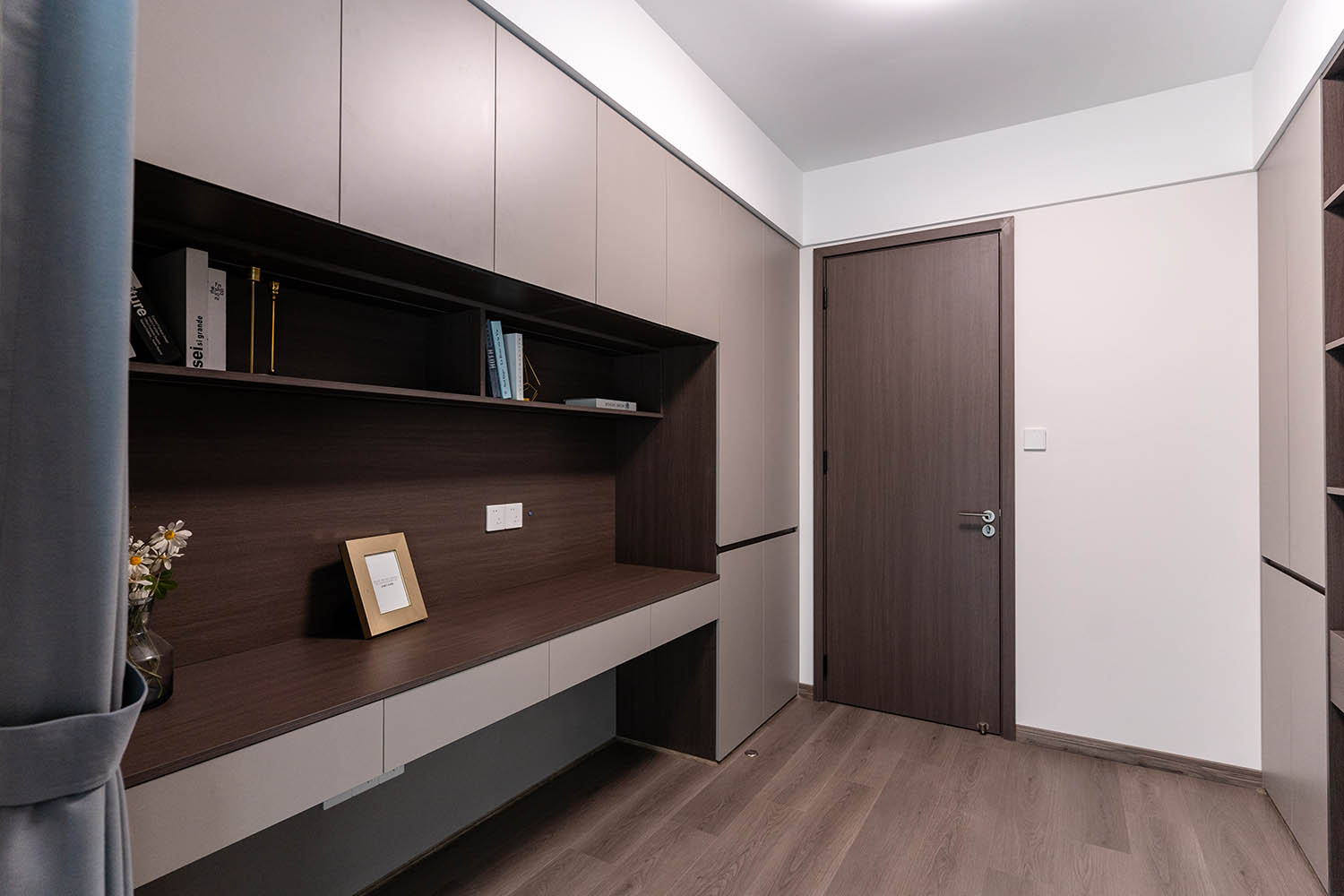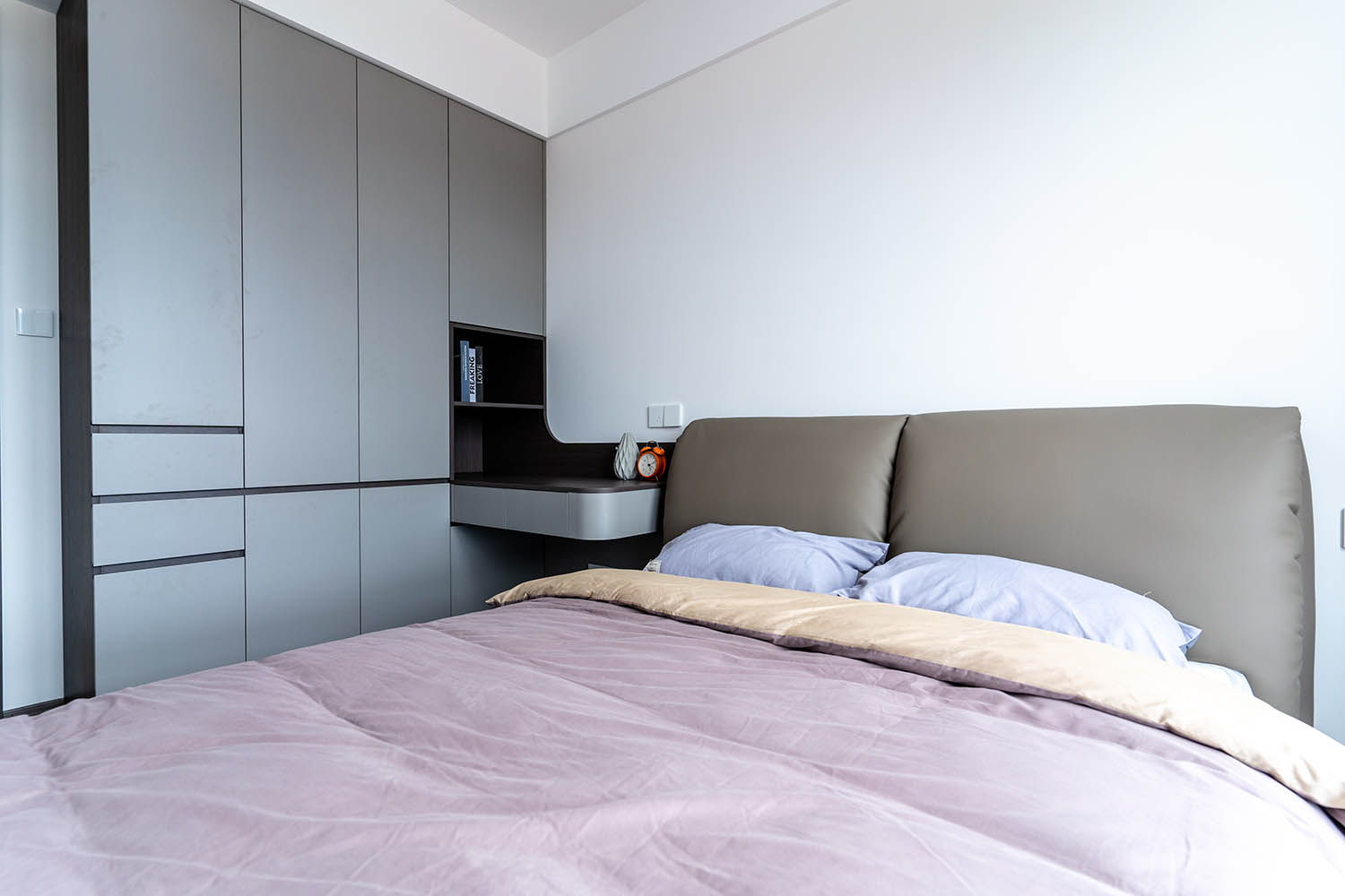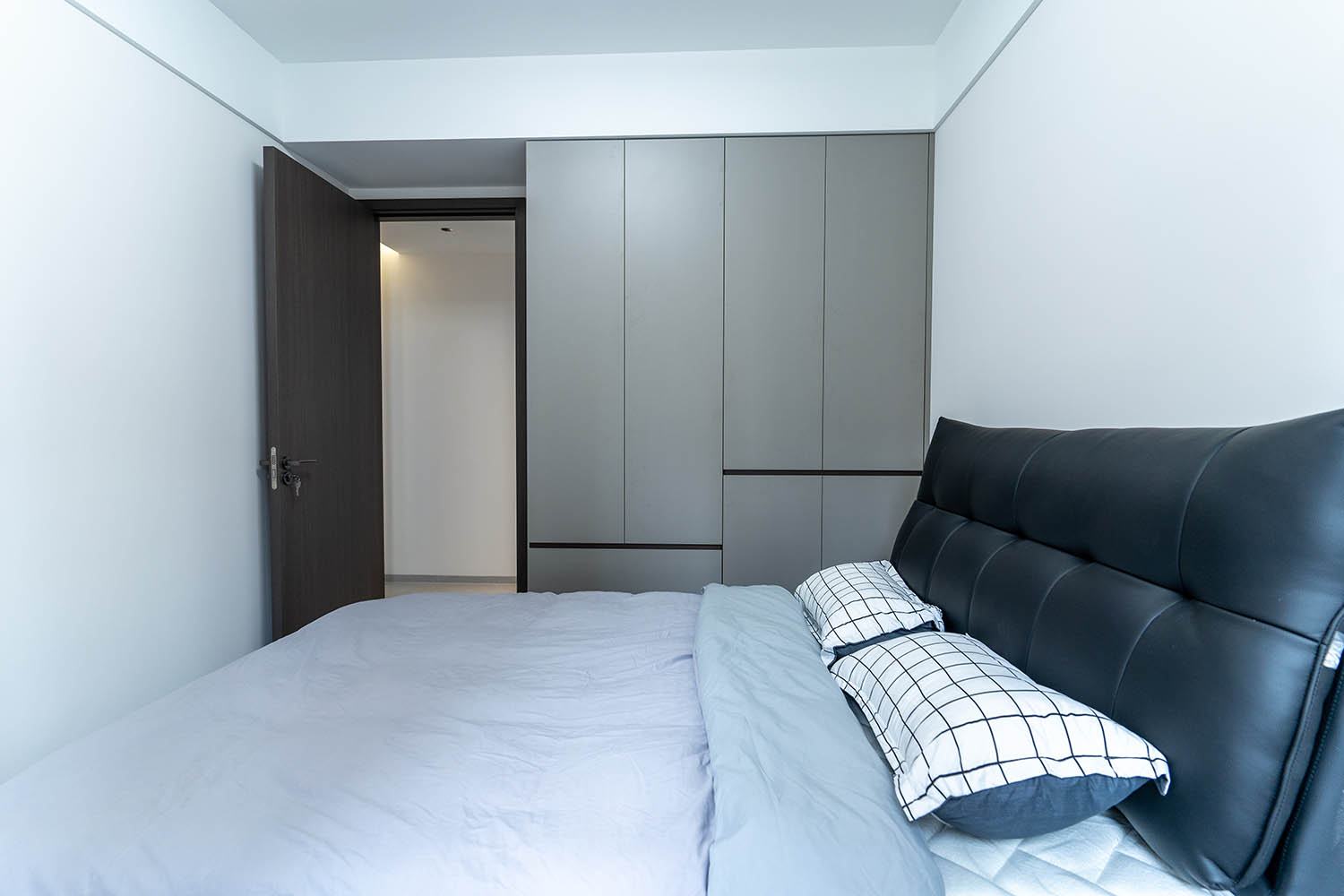 用黑、白、灰的經(jīng)典碰撞,詮釋意式極簡的「做減法的藝術(shù)」。沒有冗余裝飾,以利落線條、純粹色調(diào),讓空間回歸「實(shí)用與質(zhì)感共生」的本質(zhì),每一處都藏著 “用必要定義高級” 的設(shè)計(jì)智慧。 無主燈設(shè)計(jì) + 線性燈帶,讓光線柔和包裹空間;黑色皮質(zhì)沙發(fā)簡化形態(tài),與灰色背景墻呼應(yīng),詮釋意式「隱于簡的高級感」,舍去繁雜裝飾,還原空間本真互動場域。每一寸存在都值得被凝視,讓走過空間的人,忍不住贊嘆這份 “不動聲色的精致” 。