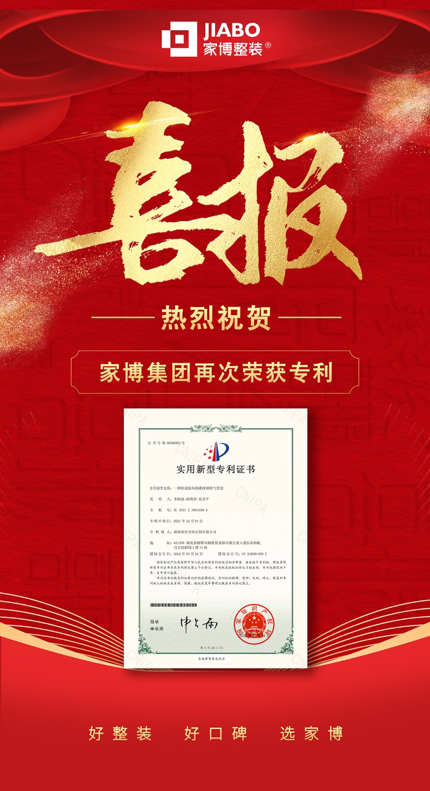 當前位置 : 網(wǎng)站首頁 > 公司動態(tài) > 家博集團再度榮獲工藝專利